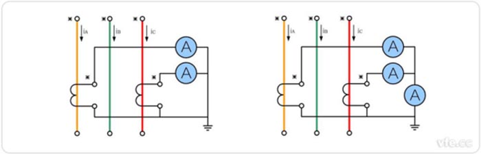 在實際工作中用得多,但僅限于三相三線制系統(tǒng)。它節(jié)省了一臺電流互感器,根據(jù)三相矢量和為零的原理,用A、C相的電流算出B相電流。