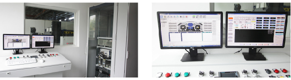 前置前驅(qū)型變速器可靠性試驗(yàn)臺(tái),可用于各種MT、AT、DCT、CVT變速器的耐久、可靠性及性能試驗(yàn)。由于使用了高功率密度的PM電機(jī)作為輸入電機(jī),取消了中間齒輪箱,使得臺(tái)架結(jié)構(gòu)簡(jiǎn)單可靠。強(qiáng)大的變速器可靠性試驗(yàn)臺(tái)軟件不僅可支持各種變速器耐久及性能試驗(yàn),更可支持發(fā)動(dòng)機(jī)模擬及整車道路模擬。